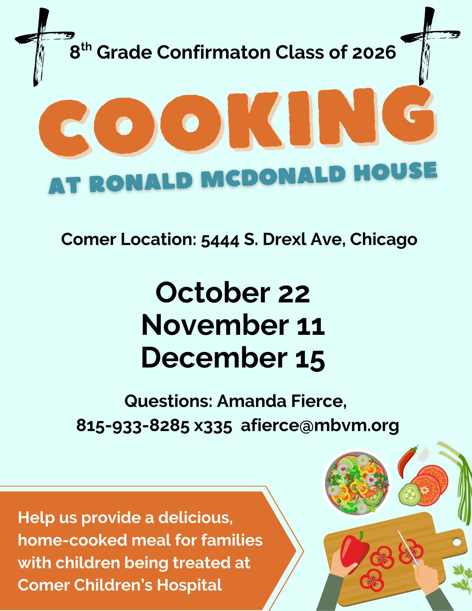 - Dec 15: ronald McDonald House (comer) Cooking, 3-8:30PM